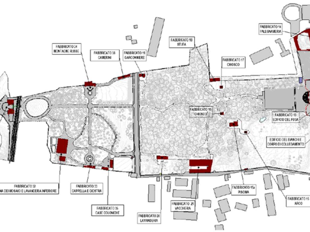 Villa Favorita, more precisely Royal Villa of the Favorita, is a historic residence in Ercolano. Built along the stretch of Corso Resina known as the Golden Mile, it is one of the most sumptuous Vesuvian villas of the 18th century. The intervention concerns the reunification of the entire complex: Lot 1 – Lower Park and buildings of the Lower Park (Casina dei Mosaici, Caffeaus, Lower Laundry, Farmhouses, Roller Coaster, Chapel, Carousel, Dressing Rooms); Lot 2 – Upper Park and buildings of the Upper Park (Cattle Shed, Carpentry, Laundry, Stove, Garçonnière, Kiosks, Arch, Pool); Lot 3 – Villa del Fuga. The project includes: the complete restoration, seismic improvement, and functional repurposing of Villa del Fuga, establishing new functions as an exhibition space and offices for the Superintendence of Architecture, Fine Arts and Landscape of Naples; the complete restoration, seismic improvement, and functional repurposing of the Cattle Shed, dedicating the building to the new headquarters of the Carabinieri Forest Command; the complete recovery and functional repurposing of the Upper Park, in order to create a new cultural attraction hub for the entire community of Ercolano and surrounding areas.